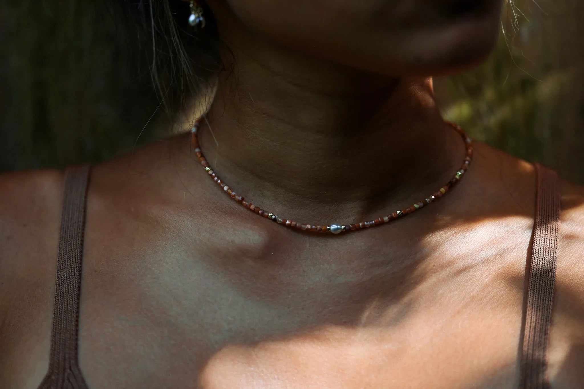 Composé de petits cubes de cornaline, pierre solaire et vibrante, encourage à passer à l'action, à oser créer et exprimer sa vérité.